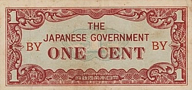 The 1 cent banknote is a piece of occupation currency issued in 1942 by Japanese forces in British Burma during World War II. The note had a value equivalent to 0.01 Burmese rupees.