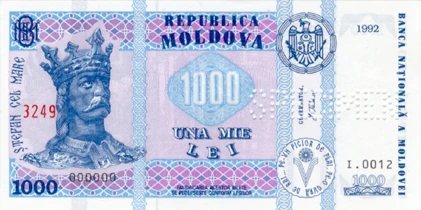 The 1000 lei banknote was first printed by Moldova in 1992. It was first issued during October 2003 and is still in circulation today.