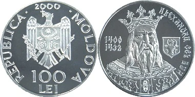 On November 29, 2000, four commemorative 100 lei coins were introduced. The first commemorated the 525th anniversary of the Battle of Vaslui. Moldavian composer, Ştefan Neaga, was commemorated on the second coin. On the third, Romanian poet, Mihai Eminescu was commemorated. The final coin commemorated the 600th anniversary of the accession of Alexander the Good to the throne of king.