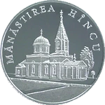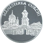 Monasteries of Moldova (Romanian: Mănăstirile Moldovei) is a series of commemorative coins of the Republic of Moldova. Initially introduced in 2000 by the National Bank of Moldova (BNM), the series was revived in 2012 and 2013. Of the 22 coins in the series, 20 were made in 2000, while 1 was made in 2012 and 2013 each. While all carry a legal tender face value equivalent to 50.00 lei in Moldova (excluding Transnistria), they are intended for collectors and thus do not see much (if any) general circulation.