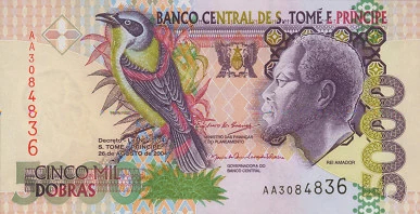 The 5000 dobra banknote was printed by São Tomé and Príncipe in 1996 and 2004. It is currently the lowest denominated banknote of the dobra found in circulation.